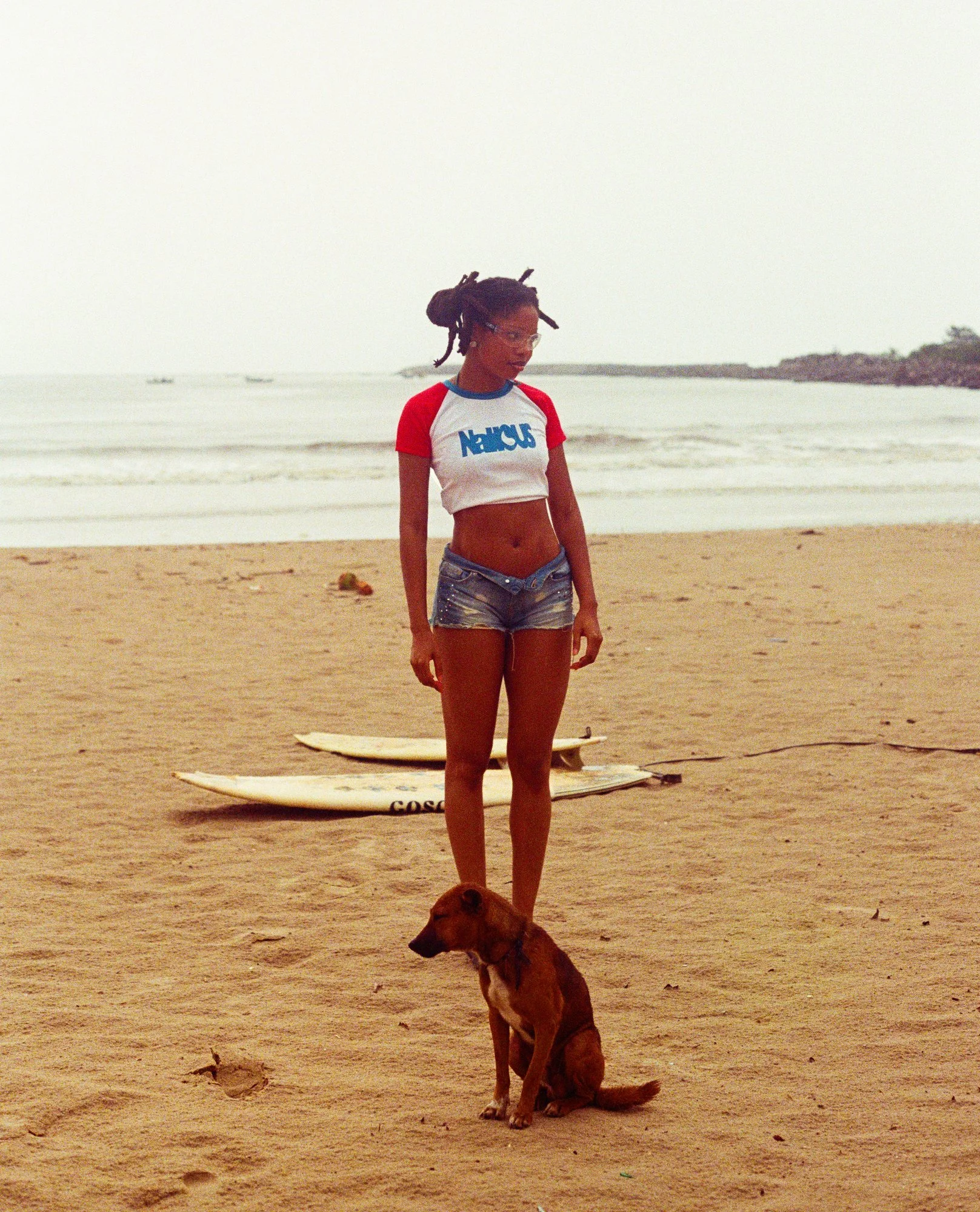 From the Oasis Is Nahous — Nahous Is Oasis collection. The USA Racer Tee is a cropped baby tee with red raglan sleeves, a blue contrast neckline, and the Nahous wordmark in blue across the chest. Retro-athletic energy meets Lagos beach culture.